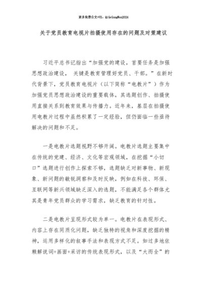 / 【七哥公文】2024年:关于党员教育电视片拍摄使用存在的问题及对策建议+更多免费公文+VX:QiGeGongWen2024
