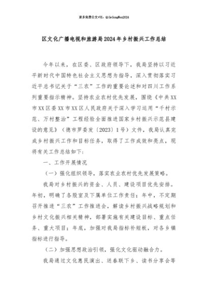 / 【七哥公文】2024年:区文化广播电视和旅游局2024年乡村振兴工作总结+更多免费公文+VX:QiGeGongWen2024