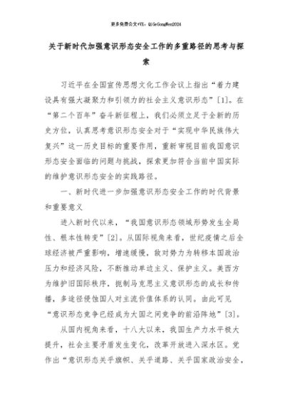 【七哥公文】2024年:关于新时代加强意识形态安全工作的多重路径的思考与探索+更多免费公文+VX:QiGeGongWen2024