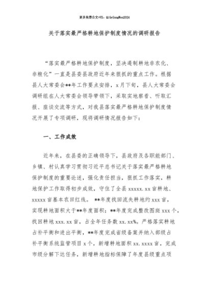 / 【七哥公文】2024年:关于落实最严格耕地保护制度情况的调研报告+更多免费公文+VX:QiGeGongWen2024