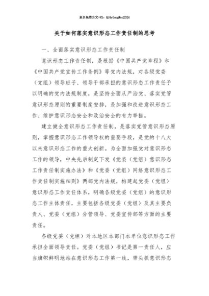 / 【七哥公文】2024年:关于如何落实意识形态工作责任制的思考+更多免费公文+VX:QiGeGongWen2024