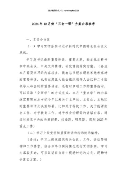 / 【七哥公文】2024年:2024年12月份“三会一课”方案内容参考+更多免费公文+VX:QiGeGongWen2024