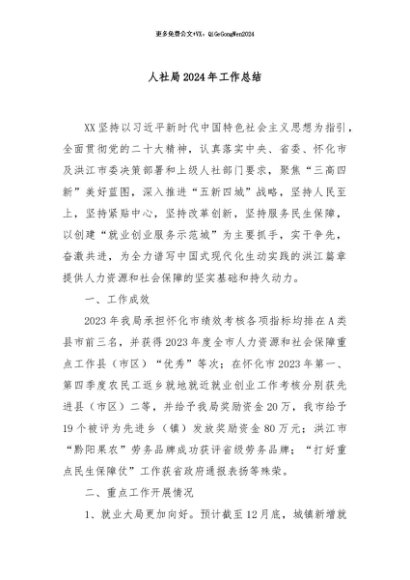 / 【七哥公文】2024年:人社局2024年工作总结+更多免费公文+VX:QiGeGongWen2024