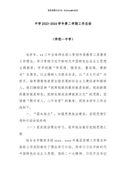 【七哥公文】2024年:中学2023-2024学年第二学期工作总结(学校—中学)+更多免费公文+VX:QiGeGongWen2024