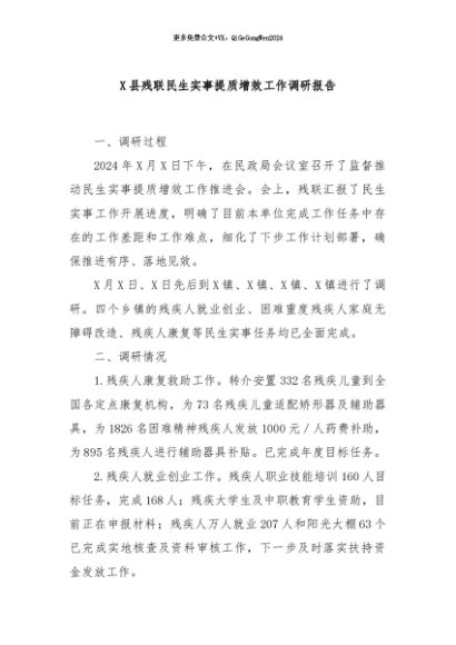 【七哥公文】2024年:X县残联民生实事提质增效工作调研报告+更多免费公文+VX:QiGeGongWen2024