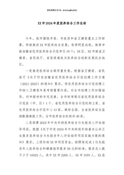 / 【七哥公文】2024年:XX市2024年度医养结合工作总结+更多免费公文+VX:QiGeGongWen2024