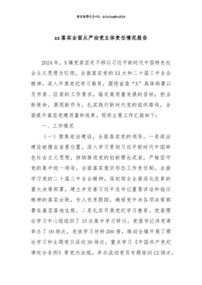 / 【七哥公文】2024年:xx落实全面从严治党主体责任情况报告+更多免费公文+VX:QiGeGongWen2024