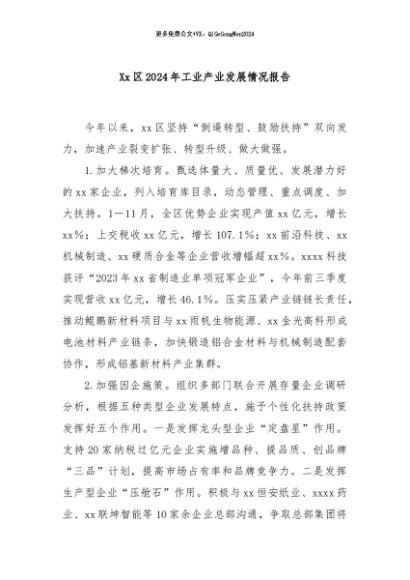 / 【七哥公文】2024年:Xx区2024年工业产业发展情况报告+更多免费公文+VX:QiGeGongWen2024