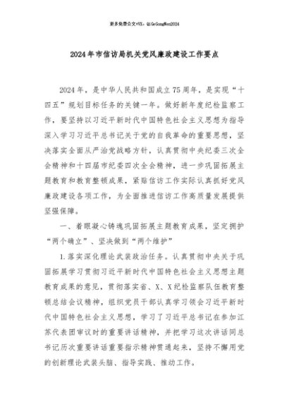 / 【七哥公文】2024年:2024年市信访局机关党风廉政建设工作要点+更多免费公文+VX:QiGeGongWen2024