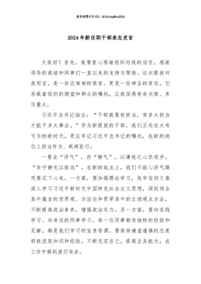 / 【七哥公文】2024年:2024年新任职干部表态发言+更多免费公文+VX:QiGeGongWen2024