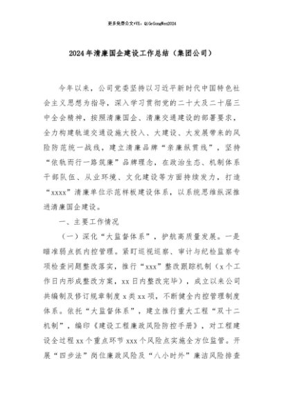 / 【七哥公文】2024年:2024年清廉国企建设工作总结(集团公司)+更多免费公文+VX:QiGeGongWen2024