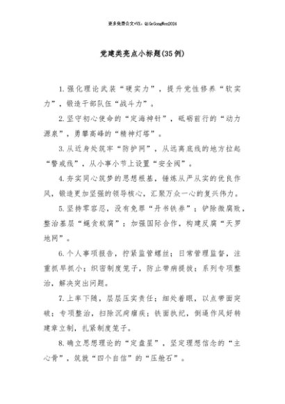 / 【七哥公文】2024年:(35例)党建类亮点小标题+更多免费公文+VX:QiGeGongWen2024