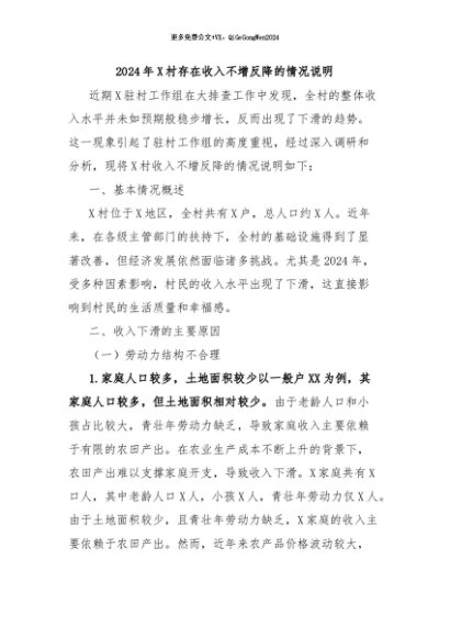 【七哥公文】2024年:2024年X村存在收入不增反降的情况说明+更多免费公文+VX:QiGeGongWen2024