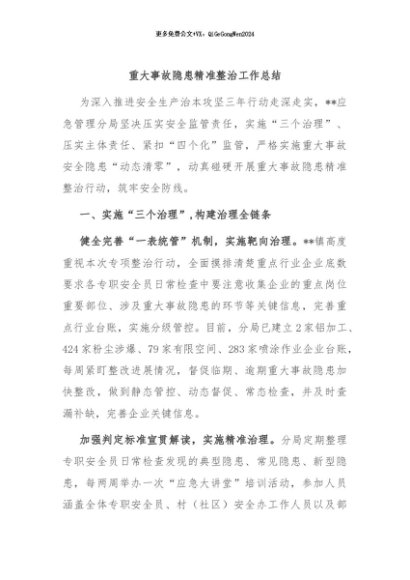 / 【七哥公文】2024年:重大事故隐患精准整治工作总结+更多免费公文+VX:QiGeGongWen2024