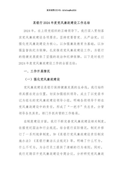 / 【七哥公文】2024年:某银行2024年度党风廉政建设工作总结+更多免费公文+VX:QiGeGongWen2024