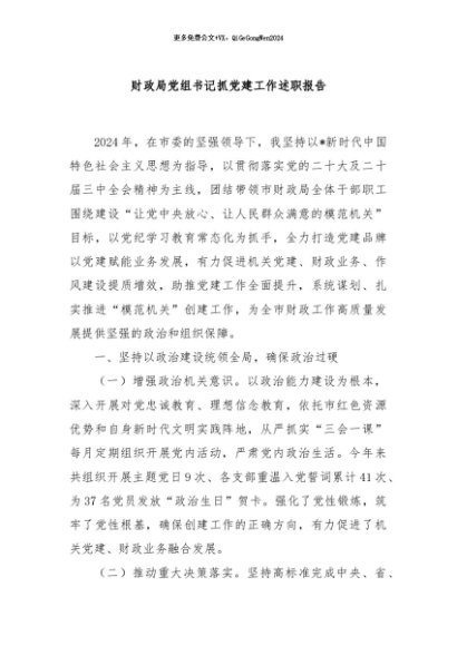 / 【七哥公文】2024年:财政局党组书记抓党建工作述职报告+更多免费公文+VX:QiGeGongWen2024
