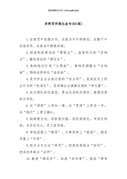 / 【七哥公文】2024年:(60组)材料写作排比金句+更多免费公文+VX:QiGeGongWen2024