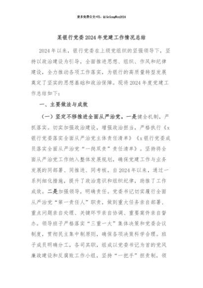/ 【七哥公文】2024年:某银行党委2024年党建工作情况总结+更多免费公文+VX:QiGeGongWen2024