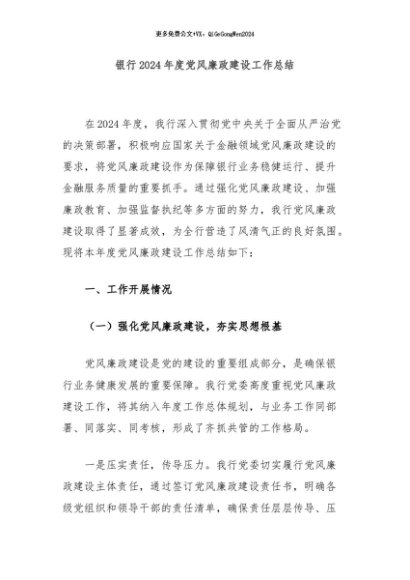 / 【七哥公文】2024年:银行2024年度党风廉政建设工作总结+更多免费公文+VX:QiGeGongWen2024