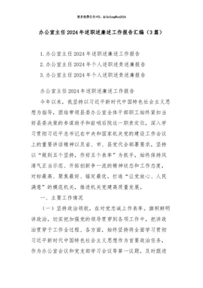 【七哥公文】2024年:(3篇)办公室主任2024年述职述廉述工作报告汇编(+更多免费公文+VX:QiGeGongWen2024