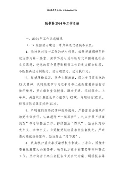 / 【七哥公文】2024年:秘书科2024年工作总结+更多免费公文+VX:QiGeGongWen2024