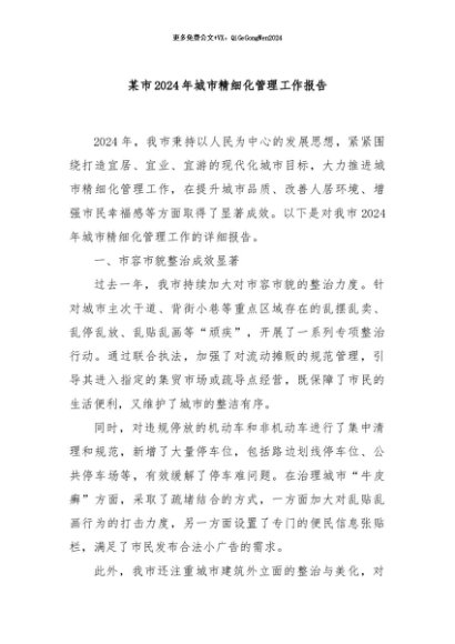/ 【七哥公文】2024年:某市2024年城市精细化管理工作报告+更多免费公文+VX:QiGeGongWen2024