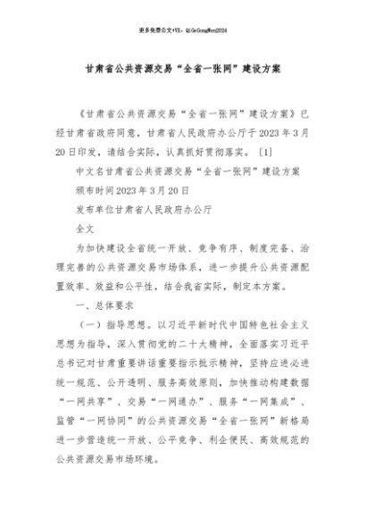 / 【七哥公文】2024年:甘肃省公共资源交易“全省一张网”建设方案+更多免费公文+VX:QiGeGongWen2024