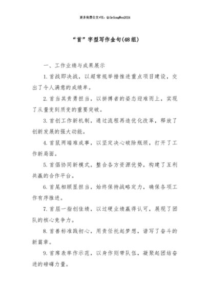 / 【七哥公文】2024年:(48组)“首”字型写作金句+更多免费公文+VX:QiGeGongWen2024