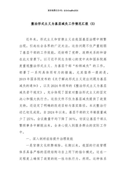 / 【七哥公文】2024年:整治形式主义为基层减负工作情况汇报 (5)+更多免费公文+VX:QiGeGongWen2024