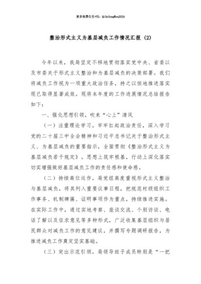 / 【七哥公文】2024年:整治形式主义为基层减负工作情况汇报 (2)+更多免费公文+VX:QiGeGongWen2024