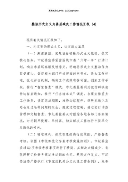 / 【七哥公文】2024年:整治形式主义为基层减负工作情况汇报 (4)+更多免费公文+VX:QiGeGongWen2024