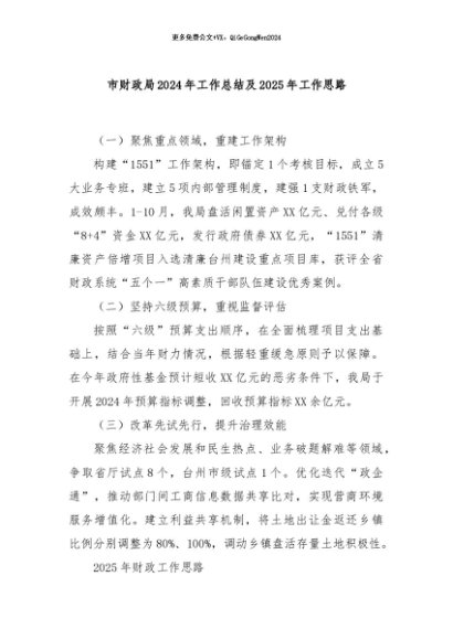 / 【七哥公文】2024年:市财政局2024年工作总结及2025年工作思路+更多免费公文+VX:QiGeGongWen2024
