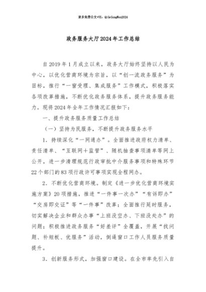 / 【七哥公文】2024年:政务服务大厅2024年工作总结+更多免费公文+VX:QiGeGongWen2024