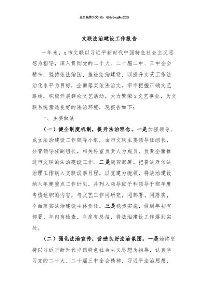 / 【七哥公文】2024年:文联法治建设工作报告+更多免费公文+VX:QiGeGongWen2024