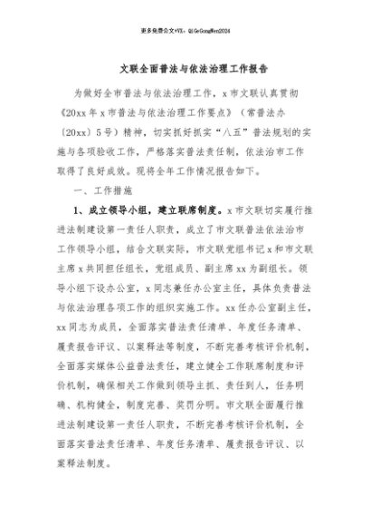 / 【七哥公文】2024年:文联全面普法与依法治理工作报告+更多免费公文+VX:QiGeGongWen2024
