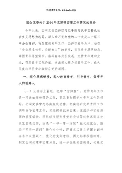 / 【七哥公文】2024年:国企党委关于2024年党建带团建工作情况的报告+更多免费公文+VX:QiGeGongWen2024
