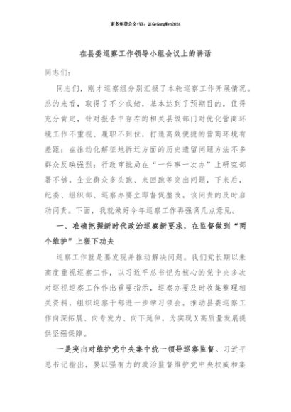 / 【七哥公文】2024年:在县委巡察工作领导小组会议上的讲话+更多免费公文+VX:QiGeGongWen2024
