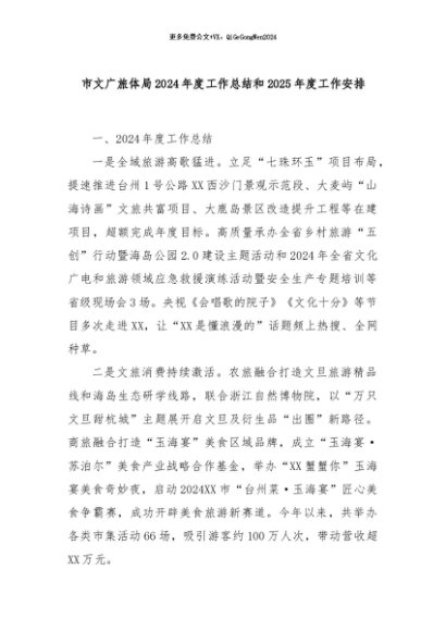 【七哥公文】2024年:市文广旅体局2024年度工作总结和2025年度工作安排+更多免费公文+VX:QiGeGongWen2024