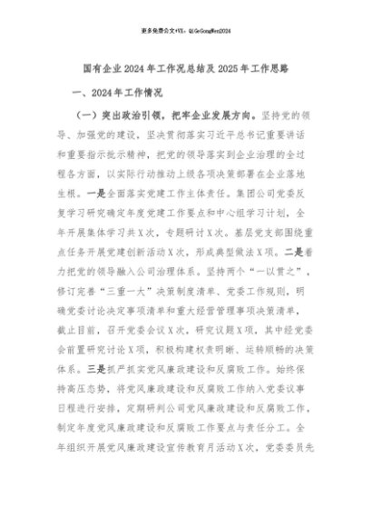 / 【七哥公文】2024年:国有企业2024年工作况总结及2025年工作思路+更多免费公文+VX:QiGeGongWen2024