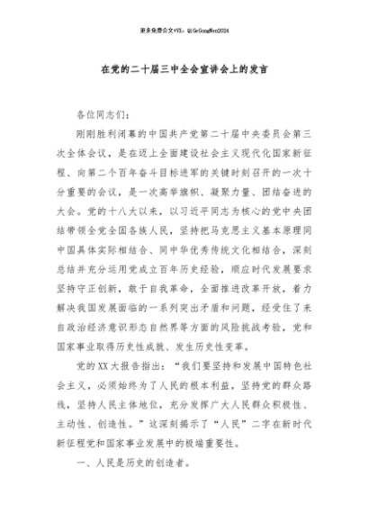 / 【七哥公文】2024年:在党的二十届三中全会宣讲会上的发言+更多免费公文+VX:QiGeGongWen2024