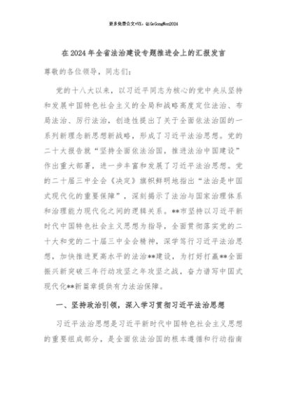 / 【七哥公文】2024年:在2024年全省法治建设专题推进会上的汇报发言+更多免费公文+VX:QiGeGongWen2024