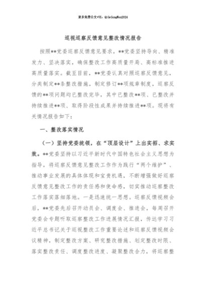/ 【七哥公文】2024年:巡视巡察反馈意见整改情况报告+更多免费公文+VX:QiGeGongWen2024