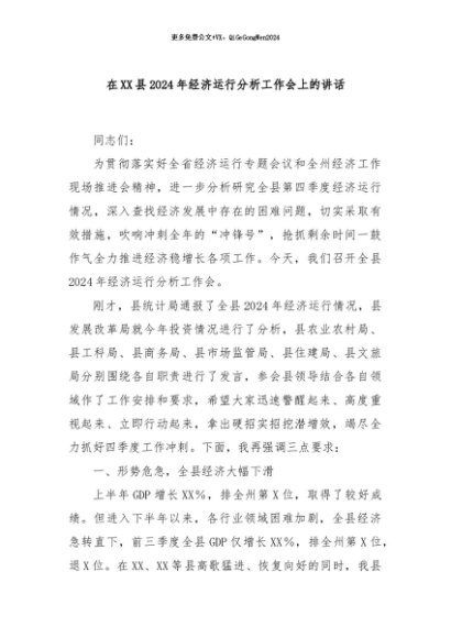 / 【七哥公文】2024年:在XX县2024年经济运行分析工作会上的讲话+更多免费公文+VX:QiGeGongWen2024