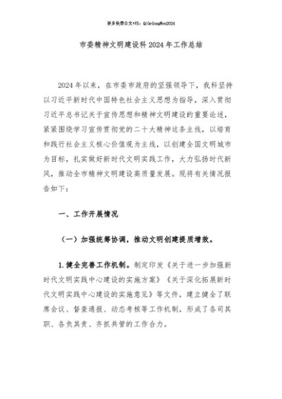 / 【七哥公文】2024年:市委精神文明建设科2024年工作总结+更多免费公文+VX:QiGeGongWen2024