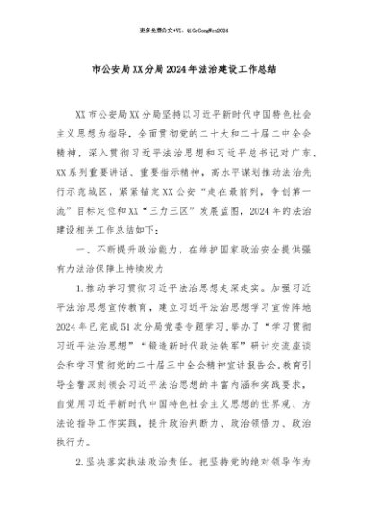 / 【七哥公文】2024年:市公安局XX分局2024年法治建设工作总结+更多免费公文+VX:QiGeGongWen2024