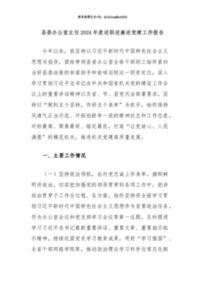 / 【七哥公文】2024年:县委办公室主任2024年度述职述廉述党建工作报告+更多免费公文+VX:QiGeGongWen2024