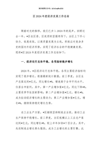 / 【七哥公文】2024年:区2024年度经济发展工作总结+更多免费公文+VX:QiGeGongWen2024