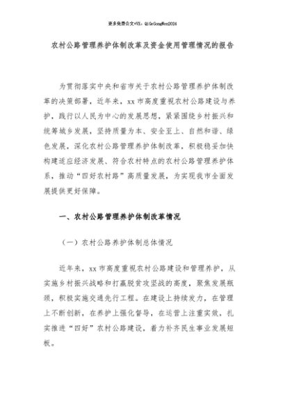 / 【七哥公文】2024年:农村公路管理养护体制改革及资金使用管理情况的报告+更多免费公文+VX:QiGeGongWen2024