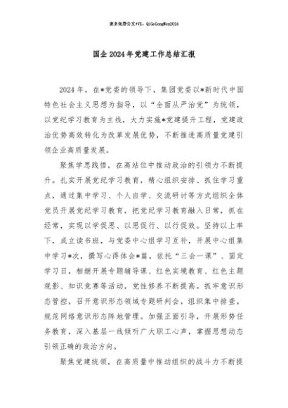/ 【七哥公文】2024年:国企2024年党建工作总结汇报+更多免费公文+VX:QiGeGongWen2024