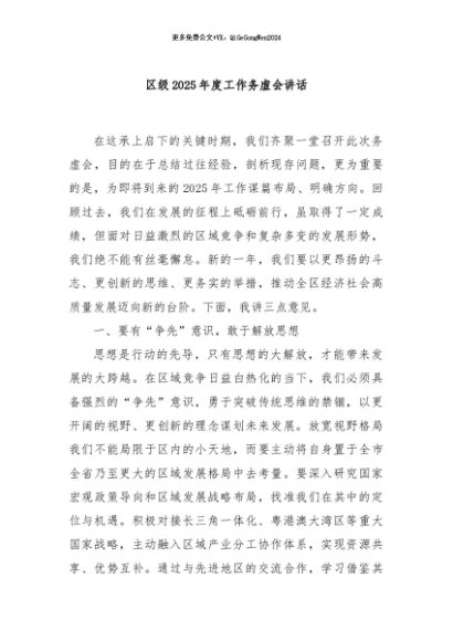 / 【七哥公文】2024年:区级2025年度工作务虚会讲话+更多免费公文+VX:QiGeGongWen2024